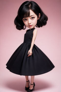 1woman,chibi,dress,black hair,