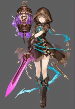 (best quality), ((masterpiece)), (highres), illustration, original, extremely detailed,   <lora:死の爱丽丝:0.7>otoko no ko, male focus, 1boy, boots, solo, full body, cage, weapon, hood, aqua eyes, sword, looking at viewer, holding, brown hair, transparent background, holding weapon, white background, knee boots, open mouth, dress, holding sword, gloves