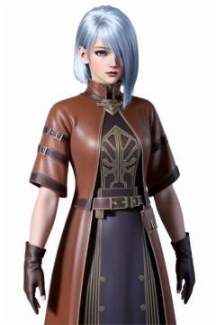 ((HRD, HUD, 8K)),((masterpiece, best quality)), highly detailed, soft light,1girl, solo, short hair, bangs, blue hair, white hair, hair over one eye, blue eyes, lips, belt, gloves, simple background, white background, cowboy shot, standing, looking at viewer, <lora:20240425-1714007036601:0.72>