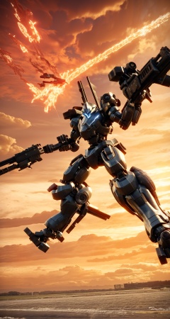 score_9, score_8_up, score_7_up, best quality, masterpiece, source_anime, <lora:jijia-pony-Tanger-000006:0.8>, jijia, 3d, CG, armored core \(video game\), weapon, mecha, robot, no humans, gun, science fiction, holding, holding weapon, holding gun, cloud, battle, glowing, firing, sky, flying,some futuristic robots fighting in the air,some guns on the screen and a light up background