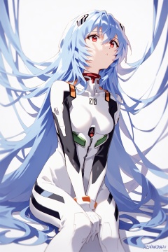 score_9, score_8_up, score_7_up, score_6_up,jijia, 2d, anime, neon genesis evangelion, 1girl, long hair, solo, plugsuit, very long hair, red eyes, ayanami rei, white bodysuit, sitting, bodysuit, breasts, wariza, hair between eyes, absurdly long hair, interface headset, blue hair, medium breasts, bangs, white background, parted lips, looking up, pilot suit, between legs<lora:EMS-348601-EMS:0.800000>