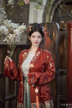 ming_hanfu,1girl,(spring,flowers:1.2),looking_at_viewer,,(big breasts:1.29), hanfu
