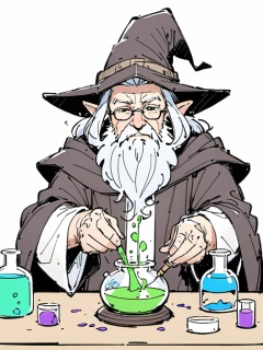 <lora:luXL毛躁手绘Fuzzylines_lora_resized:0.8>, fuzzylines, sketch, an old wizard, in the lab, casting spell, mixing potions,