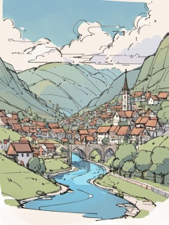 <lora:luXL毛躁手绘Fuzzylines_lora_resized:0.8>, fuzzylines, sketch, an old town, at the valley, surrounded by mountains and river,