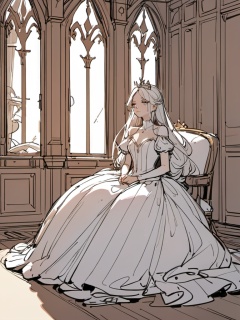 <lora:luXL毛躁手绘Fuzzylines_lora_resized:0.6>, fuzzylines, sketch, a beautiful queen is very sad and crying by the window in her room in the castle, luxury decoration,