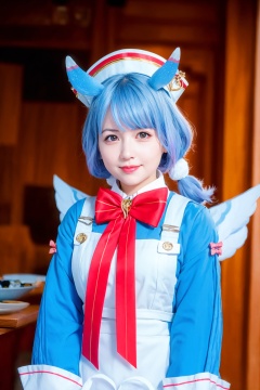 masterpiece, best quality,(photoshop \(medium\):1.6),light smile, <lora:sigewinne-v2:1>,25yo,(mature female:1.6),large breasts,  upper body, sigewinne \(genshin impact\), red bow,blue bow,1girl,animal ears,blue hair,red eyes,white hair,multicolored hair,bangs,hat,low twintails,red eyes,blue dress,long sleeves,white apron,upper body,bowtie, bow,wings,shorts,