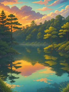 outdoors, sky, cloud, water, tree, no humans, cloudy sky, grass, nature, scenery, forest, reflection, sunset