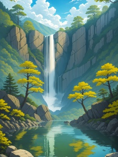 outdoors, sky, day, cloud, water, tree, blue sky, no humans, nature, scenery, forest, reflection, rock, mountain, river, waterfall, landscape