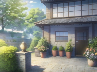 outdoors,Homestay,garden,lighting,old stone wall,Terrace landscape,, (masterpiece,best quality,ultra_detailed,highres,absurdres:1.2)