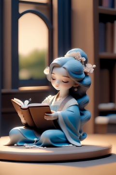 shouban,<lora:手办_v1.0:0.8>,1girl,solo,magician girl,flowing long hair,starry sky robe,holding a wand,at the moment of casting,ancient library,midnight,moonlight passes through the window,dark blue tone,encircling magic books,mysterious symbol floating in the air,quiet learning atmosphere,
