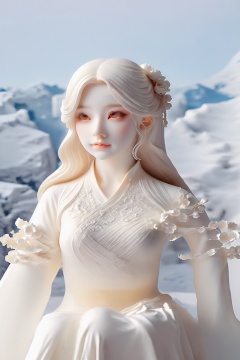shouban,<lora:手办_v1.0:1>,1girl,the summit of a snowy mountain covered in silver,the place shrouded in immortal aura,a fairy dressed in white dances lightly,her clothes fluttered in the air,skin competition snow,hair flows like a waterfall,integrate with the world of ice and snow,the ice around is crystal clear,plum blossoms bloom with proud frost,the background is mainly in a cool white tone,decorated with light pink plum blossoms and golden sunshine,create a pure and flawless atmosphere,the extraordinary and extraordinary atmosphere of the fairyland,