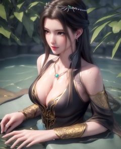 <lora:548-DA-师兄啊师克-碧霄:0.8>(,1girl, ,best quality, ),looking at viewer,masterpiece, ((((1girl, solo, , ,solo focus, lying on water, )))) (cleavage), (), ,ultra realistic 8k cg,   clean, masterpiece,     (( , )),,  , unreal, science fiction, luxury, jewelry, diamond, gold, pearl, gem, sapphire, ruby, emerald, intricate detail, delicate pattern, charming, alluring, seductive, erotic, enchanting, hair ornament, necklace, earrings, bracelet, armlet,halo,(cleavage),, (),