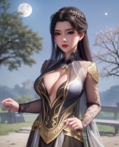 <lora:548-DA-师兄啊师克-碧霄:0.8>(,1girl, ,best quality, ),looking at viewer,  ,ultra detailed background,ultra detailed background,ultra realistic 8k cg, ,masterpiece, (( , )),, ,fiction,mole,,      ,(cleavage), (),  ,see-through, lace, (((, solo, moon, , bare_tree, )))(cleavage),