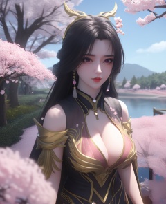 <lora:549-DA-百炼成神-司妙玲:0.8>(,1girl, ,best quality, ),looking at viewer,  ultra detailed background,ultra realistic 8k cg,ultra detailed 8k cg,masterpiece,upper body,  (( , )),, ,science fiction,mole, ultra realistic 8k cg, ,    ,outdoors, sun,sunlight, cherry blossoms,      (cleavage), (),