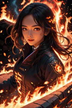 , haha,1girl,(speed line:1.05),fire