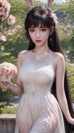 a girl,full_body,upper_body,,looking from above,a girl,above the knee,appear on camera,(a girl appeared at the front:1.2),(holding flowers in hand:1.1),stand,crescent_moon,black hair,long hair,whitenight,sky,solo,cloud,,simple background,a neat background,red dress,character focus,clear background,HDR,UHD,8K,masterpiece,absurdres,raise your head,