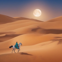 desert_sky,outdoors,sky,moon,scenery,desert,wide shot,animal, landscape, tang_hanfu, FANTASY