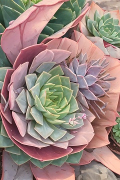 Succulent_Plants,succulent plants,(pink-blue-red-purple-green leaf),close-up, macro shot, outdoor