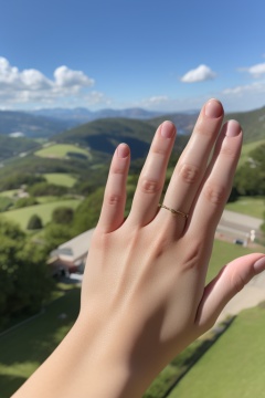 <lora:nicehand000008:0.5>,HDR,UHD,8K,Highly detailed,best quality,masterpiece,Close up shots of hands,five fingers,blue sky,sky,outdoors,cloud,close-up,out of frame,day,