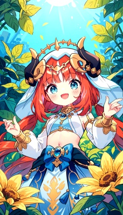(masterpiece, best quality, ultra-detailed, highres),perfect face,sidelighting,lustrous skin,(bloom),(shine),lighting,ray tracing,outdoor,depth_of_field,very detailed background,highly detailed background,Masterpiece,Ultra detailed,great composition,Dynamic angle,[Bottle bottom],(wide shot),extremely delicate and beautiful,(Highest picture quality),(Master's work),(Detailed eyes description),(Detailed face description),(fantasy),depth of field,solo,Beautiful girl,extreme light and shadow,masterpiece,rich in detail,(fine features),(highest quality),(masterpiece),(beautiful) detailed girl,(straight-on),full body,(extremely detailed CG unity 8k wallpaper),(masterpiece),(best quality),(ultra-detailed),(best illustration),Volumetric Lighting,Best Shadows,Shallow,(masterpiece, best quality, ultra-detailed, highres),sidelighting,(bloom),(shine),lighting,ray tracing,hands up,looking at viewer,upper body,<lora:nilou:1>,1girl,:d,(from below:1.2) dutch angle dynamic pose,dancing,moving rapidly,beautiful,elegant,nilou (neither flower nor mist) (genshin impact),aqua eyes,fake horns,red hair,long hair,crop top,jewelry,horns,veil,bracer,brooch,long sleeves,puffy long sleeves,skirt,bangs,twintails,puffy sleeves,neck ring,gold trim,parted bangs,circlet,blue skirt,hair ornament,detached sleeves,low twintails,floating hair,gem,blue gemstone,dancer,white headwear,midriff,very long hair,around the garden,flowers,butterflies,sunlight,sunflowers,lilies,roses,nature,petals,lens flare,((extremely glossy)),((glossy skin)),((soft reflective skin)),((reflections)),wide shot,