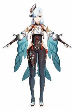 score_9, score_8_up, score_7_up, score_6_up, 8k, best quality, masterpiece, (ultra-detailed:1.1), (high detailed skin), (full body:1.4), white background, standing, looking at viewer, (solo:1.4), hand on hip, <lora:ganshenxian-A3-Tanger-000013:0.8>, shenhe \(genshin impact\), Shenhe's def clothes, 1girl, long hair, hair over one eye, full body, looking at viewer, hair ornament, bodysuit, standing, blue eyes, hip vent, (white background, simple background:1.3), (beautiful_face), ((intricate_detail)), clear face, ((finely_detailed)), fine_fabric_emphasis, ((glossy)), full_shot,