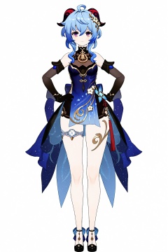 score_9, score_8_up, score_7_up, score_6_up, 8k, best quality, masterpiece, (ultra-detailed:1.1), (high detailed skin), (full body:1.4), white background, standing, looking at viewer, (solo:1.4), hand on hip, <lora:ganshenxian-A3-Tanger-000013:0.8>, ganyu \(genshin impact\), Ganyu's new year's clothes, 1girl, gloves, horns, ahoge, purple eyes, blue hair, looking at viewer, full body, black gloves, elbow gloves, (white background, simple background:1.3), (beautiful_face), ((intricate_detail)), clear face, ((finely_detailed)), fine_fabric_emphasis, ((glossy)), full_shot,