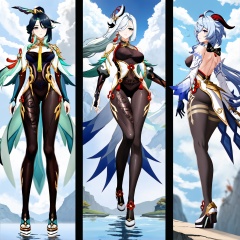 8k, best quality, masterpiece, (ultra-detailed:1.1), (high detailed skin), illustration, traditional_Chinese_style, three_panels, girls, V shape division, clouds, immortal_style, artistic_oil_painting, full body, <lora:ganshenxian-A3-Tanger-000010:0.7>, (3girls) BREAKleft girl, ganyu \(genshin impact\), ganyu's def clothes, on left BREAKmiddle girl, Xianyun \(genshin impact\), Xianyun's def clothes, on middle BREAKright girl, shenhe \(genshin impact\), shenhe's def clothes, on right BREAKgame cg, column lineup, 3 views, from_below, depth of field,