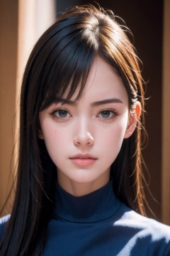 AgainRealistic_v2.0, 1girl, solo, looking at viewer, realistic, portrait, long hair, blurry, black hair, shirt, closed mouth