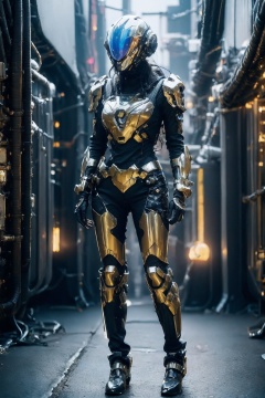 photorealistic,1girl,cyberpunk armor,helmet,(detailed face:1.2),(full body:1.2),realistic, science fiction, helmet, cable, cyberpunk, lips, screen,