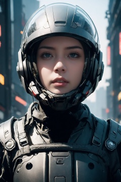 photorealistic,1girl,cyberpunk armor,helmet,(detailed face:1.2),upper body,realistic, science fiction, helmet, cable, cyberpunk, lips, screen,