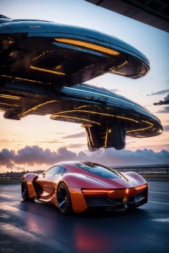 (photorealistic:1.4),(Realistic:1.2), car, motor vehicle, vehicle focus, science fiction, motion blur, no humans, city, flying, scenery, aircraft, cloud, building, road, sky, helicopter, outdoors, smoke, bridge, realistic, cloudy sky, truck, glowing, cyberpunk