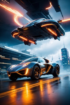 (photorealistic:1.4),(Realistic:1.2), car, motor vehicle, vehicle focus, science fiction, motion blur, no humans, city, flying, scenery, aircraft, cloud, building, road, sky, helicopter, outdoors, smoke, bridge, realistic, cloudy sky, truck, glowing, cyberpunk