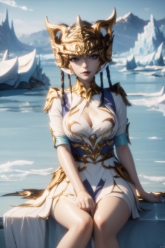 Girl, smile, sitting on the sea, clouds, seawater, waves, glaciers,