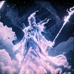 ftxd,<lora:ftxd_v1.0:1>,masterpiece,best quality,1girl,Professional growth stage,feather,sky,Canary yellow voluminous curls with a side part,Teasing smile,Deep purple corduroy shirt,A slender, athletic build with a narrow waist and wide hips,scythe,between legs,