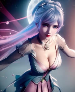 <lora:552-DA-斗罗大陆-唐舞桐-V2:0.8>(,1girl, ,best quality, ),looking at viewer,masterpiece, (( , )),, realistic,science fiction,mole, ultra realistic 8k cg, moonlight,full moon,  rose,(cleavage), (),