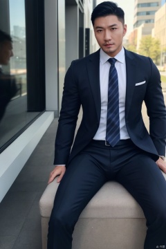 1man,business_suit,(masterpiece, realistic, Realism, best quality, highly detailed, 8K Ultra HD, sharp focus, profession),asian,exquisite facial features,deep eyes,handsome,male focus,muscular,full body,outdoors,soft lighting,Dynamic pose, hzbz