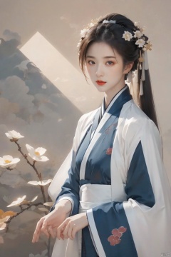 1girl, solo, looking at viewer,  realistic, Asian girl, photography,flower shadow,  hanfu