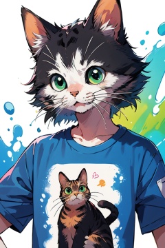 ,(Masterpiece:1.2, high quality,ultra-fine painting,Vivid Colors),(white background:1.2),TshirtDesignAF, T shirt design,cat, solo,green eyes,vibrant,cure lovely,  <lora:Chinese Li Hua:0.6>, <lora:cat_20230627113759:0.5>