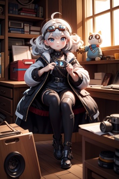 A whimsical and eccentric inventor,with wild curls of silver hair and eyes that shine with a spark of mad genius,surrounded by a workshop filled with gears,gadgets,and peculiar contraptions. Dressed in a patchwork coat and goggles perched on his forehead,he tinkers and experiments with new creations,embodying the spirit of innovation and imagination unleashed,Inventive eccentric,mad scientist,creative brilliance,, masterpiece,best quality,very aesthetic,absurdres,