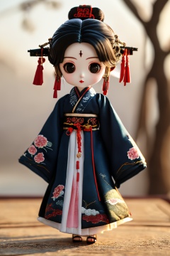 PPMT01,1girl,solo,looking at viewer,jewelry,long sleeves,black hair,blurry background,full body,standing,sleeves past wrists,chinese clothes,wide sleeves,black eyes,chibi,<lora:PPMT1.5-000008:0.8>,, masterpiece, best quality,