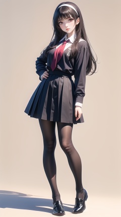 (best quality), ((masterpiece)), (highres), illustration, original, extremely detailed,1girl, kasumigaoka utaha, pantyhose, solo, long hair, school uniform, black hair, hairband, black pantyhose, red eyes, skirt, full body, looking at viewer, shoes, simple background, white background
