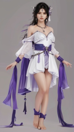 (best quality), ((masterpiece)), (highres), illustration, original, extremely detailed,   <lora:武侠与剑仙:0.7>1girl, solo, jewelry, barefoot, long hair, dress, bare shoulders, black hair, necklace, full body, hair ornament, looking at viewer, white dress