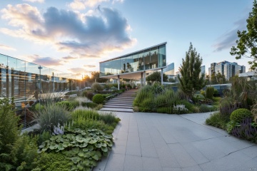 HDR,UHD,8K,best quality,masterpiece,Highly detailed,Studio lighting,sharp focus,yshj,bwg,building,Architectural skin details,Grille,square,steps,day,HDR-based rendering,extreme-description,Beautiful composition,a peaceful atmosphere,advanced sense,Comfortable scale,creative layout,gravel,Rich plant groupings,Richly layered space with plenty of functional space,Best Lighting,