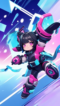 1girl,solo,game effects,pink background,