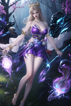 future003,bare shoulders,blue eyes,bracelet,detached sleeves,dress,hair ornament,jewelry,long hair,looking at viewer,purple dress,tail,barefoot,thigh gap,<lora:future003-yulinglong:0.7>,lawn,on ground,, best quality,masterpiece,highres,official art,extremely detailed cg unity 8k wallpaper,