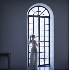 fairy,noble,elegant,beautiful,1girl,solo,dress,window,ponytail,backless dress,backless outfit,indoors,jewelry,standing,bare shoulders,white dress,<lora:jingling-0000010:0.6>,