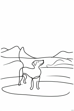 Chinese_zodiac,dog,Chinese zodiac, simple drawing, One stroke of painting, a line art, black lines, white background, desert_sky