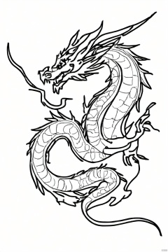 Chinese_zodiac,dragon,Chinese zodiac, simple drawing, One stroke of painting, a line art, black lines, white background, desert_sky,dragon