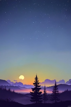 Silhouette_Landscape,Wallpaper,outdoors,sky,cloud,water,tree,nature,scenery,fullmoon,star,purple-green-blue