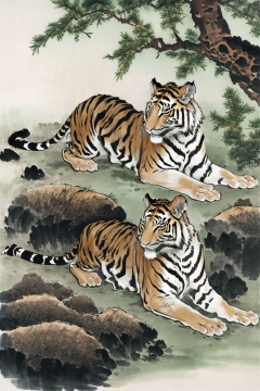 <lora:AgainChineseInkPainting:1>,AgainChineseInkPainting, tiger, no humans, animal focus, year of the tiger, branch, animal, traditional media, tree, looking at viewer, chinese ink painting, lying, border, chinese zodiac, rock, on side, white background, white tiger, full body, sleeping, painting \(medium\)